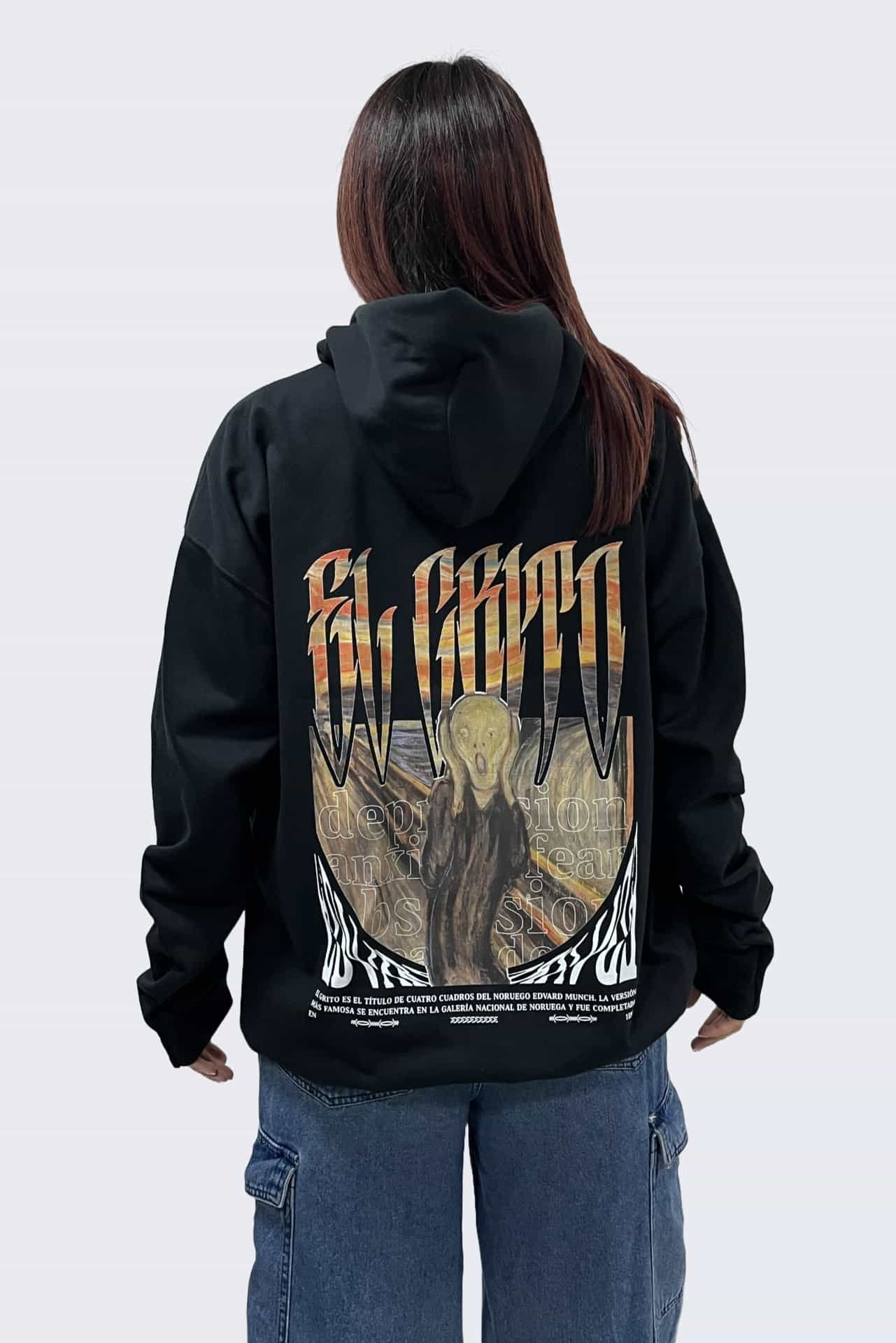 Inspirado en la emblemática obra de Edvard Munch, este buzo es una expresión audaz del alma humana. Confeccionado con los mejores materiales, este buzo ofrece comodidad y estilo para cualquier ocasión. Captura la intensidad emocional del cuadro con cada detalle.