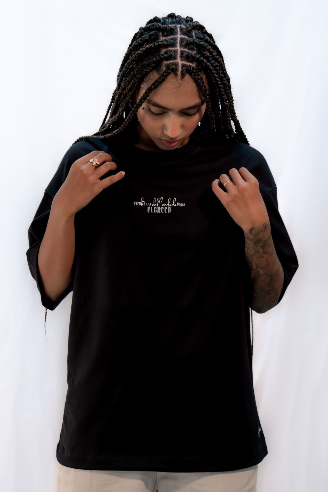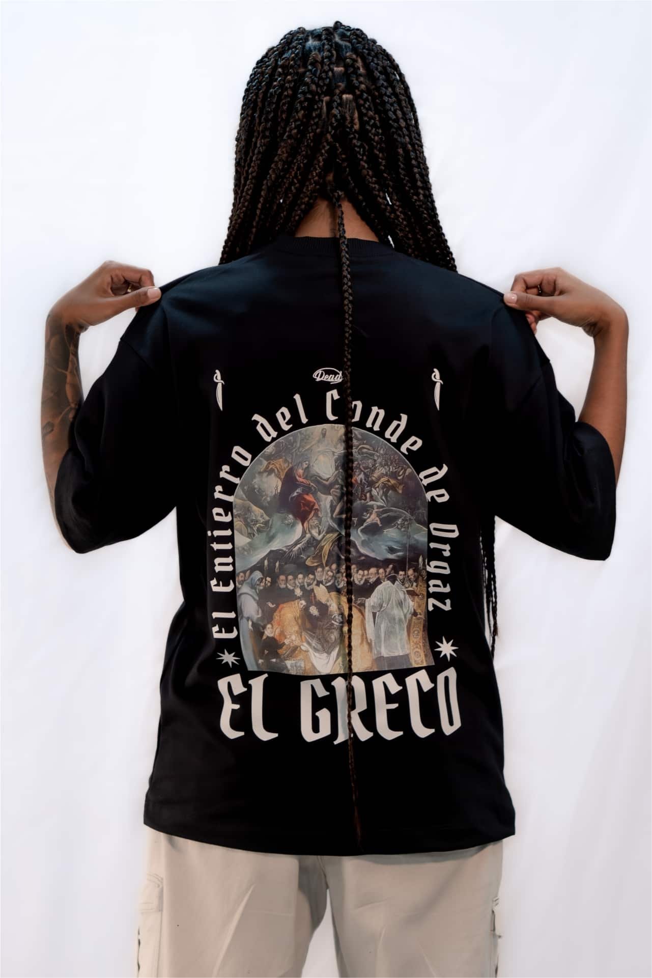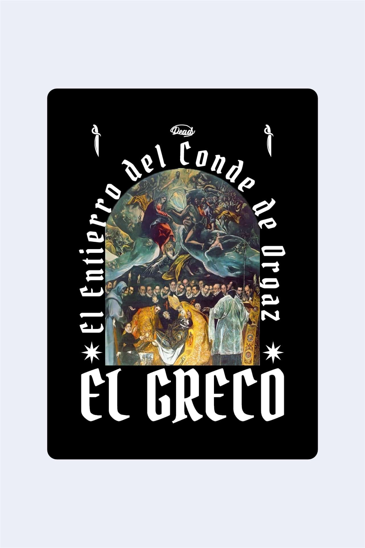 Inspirada en la obra maestra de El Greco, esta camiseta es un tributo a la grandeza del arte renacentista. Pintada en el siglo XVI, «El Entierro del Conde Orgaz» es una representación magistral de lo divino y lo terrenal, capturando la emotiva escena del entierro del noble español. Ahora, puedes llevar contigo este icónico cuadro en forma de moda urbana. Confeccionada con tela burda de 270gr, esta camiseta oversited ofrece comodidad y estilo sin esfuerzo. Disponible en negra y blanca para adaptarse a tu gusto.