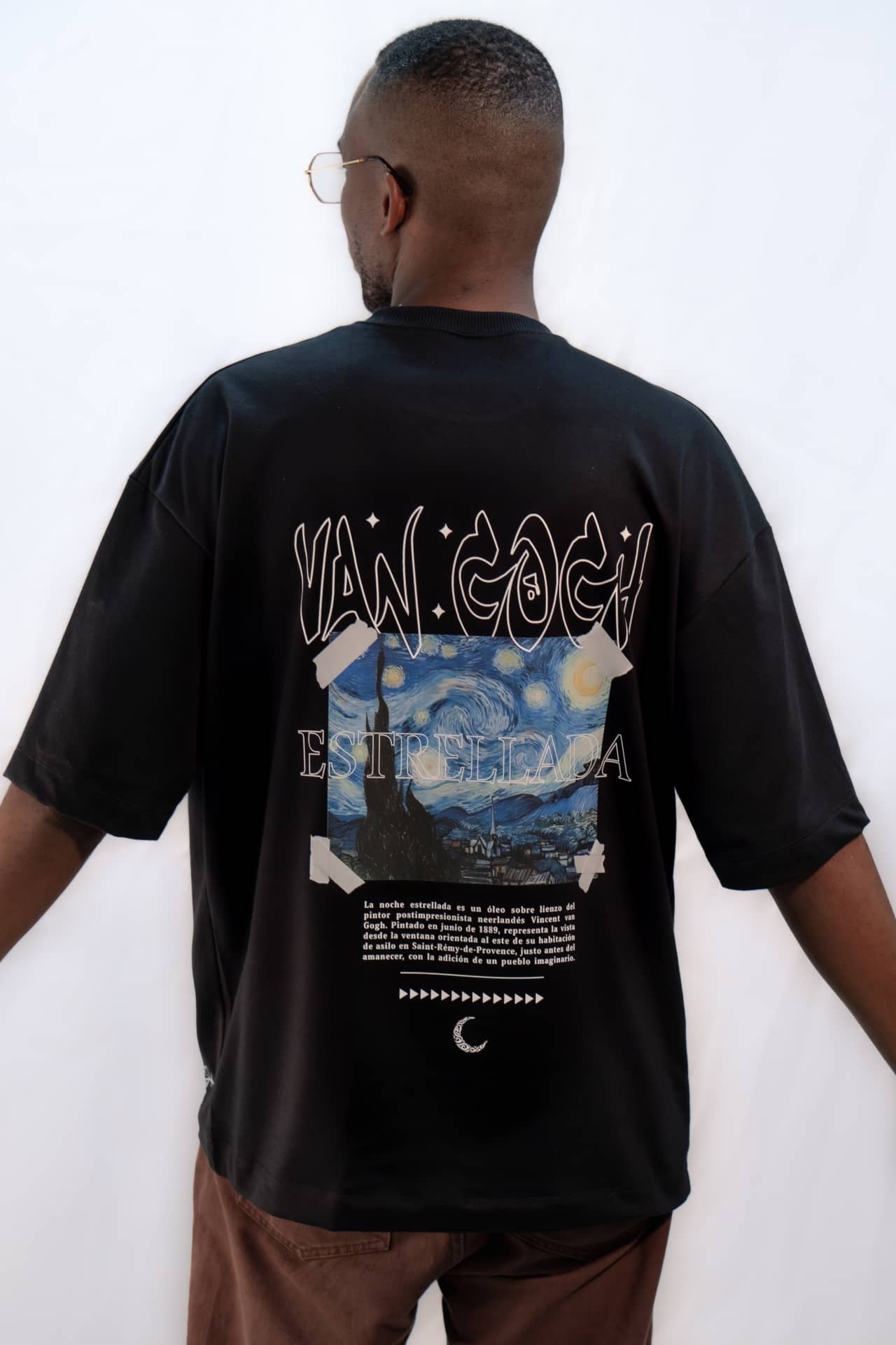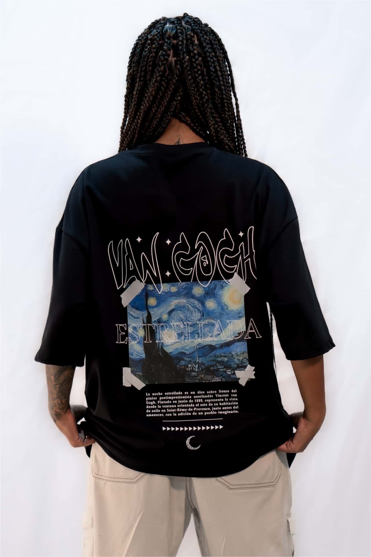 Inspirada en la célebre obra de Vincent van Gogh, esta camiseta te transportará a las profundidades de la noche con su cautivador diseño. Pintada por Van Gogh en 1889 durante su estancia en el asilo de Saint-Rémy-de-Provence, «La Noche Estrellada» es un símbolo de creatividad y belleza eterna. Ahora, puedes llevar contigo esta obra de arte en forma de moda urbana. Confeccionada con tela burda de 270gr, esta camiseta oversited ofrece comodidad y estilo sin esfuerzo. Disponible en negro y blanco para adaptarse a tu gusto.